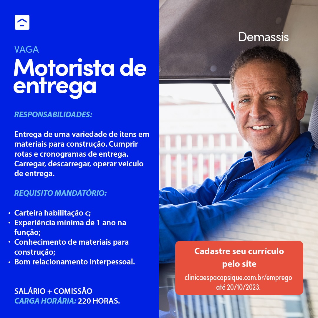 Entrega de uma variedade de itens em materiais para construção. Cumprir rotas e cronogramas de entrega. Carregar, descarregar, operar veículo de entrega.